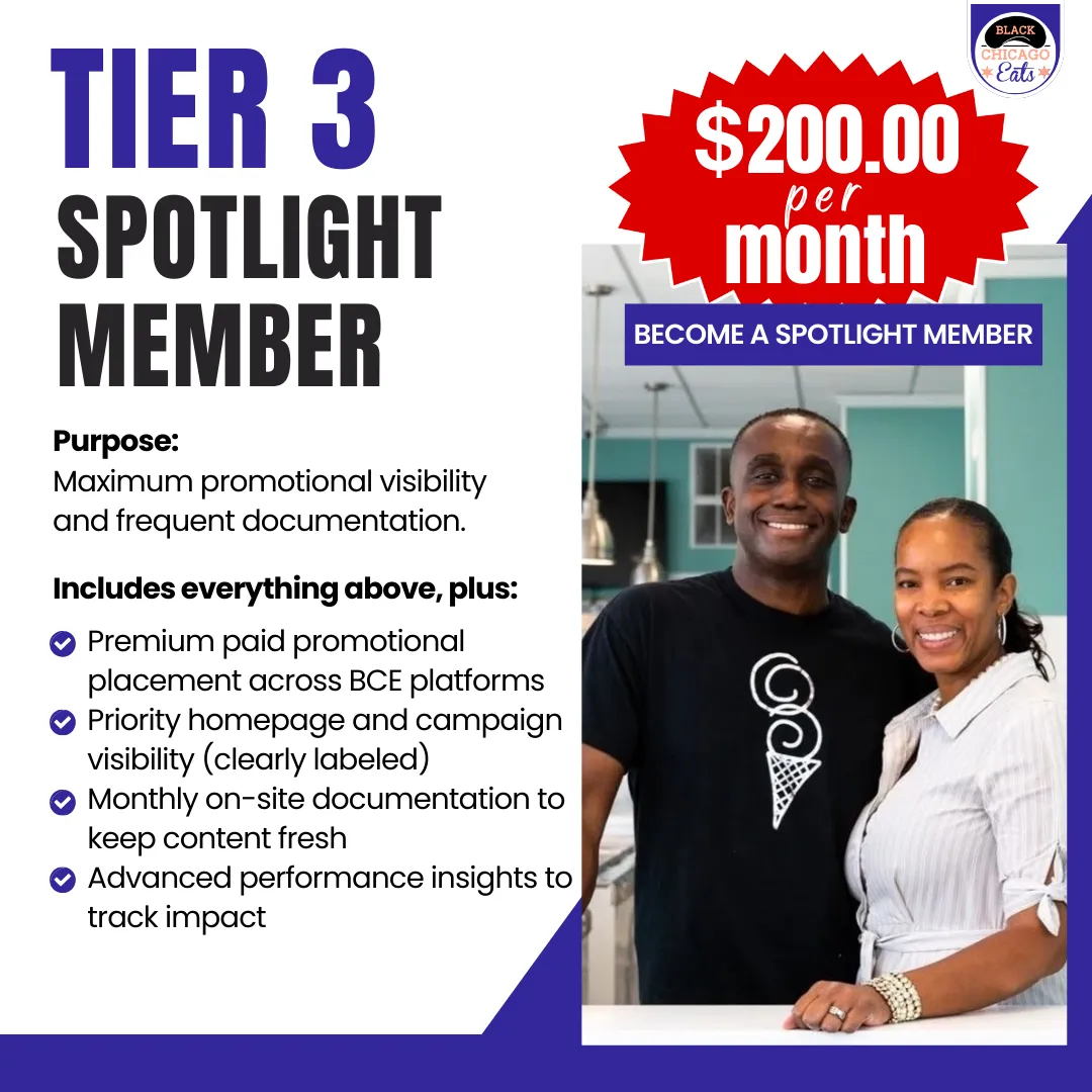 And if you’re ready to lead your category or support a major push like a launch or expansion, Spotlight gives you maximum presence across Black Chicago Eats.
